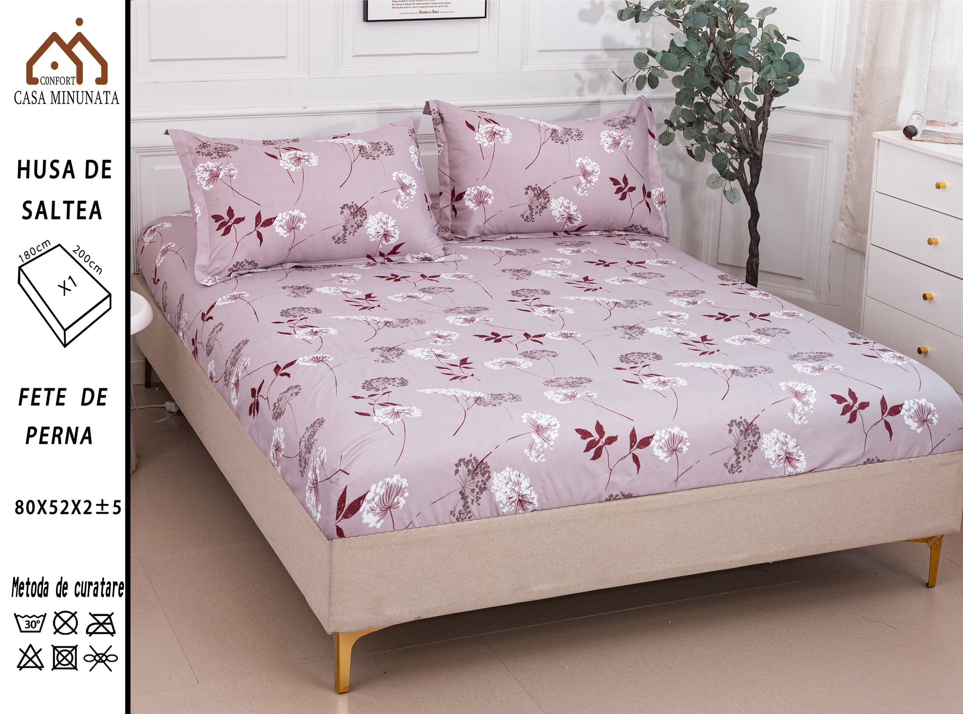 Husa de pat cu elastic, bumbac satinat, cu 2 fete de perna